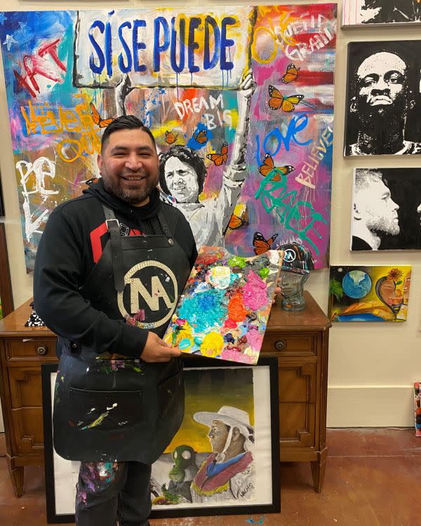 Moya Art Gallery & Studio is home to the vibrant, culturally inspired artwork of Ignacio “Nacho” Moya. Internationally recognized artist based in San Francisco Bay Area. Nacho’s bold use of color and expressive portraits celebrate culture, immigrant stories, farmworkers, local heroes, and everyday families. What began as paint parties in his living room has grown into a downtown gallery and creative space where people come to connect, heal, and have fun through art.