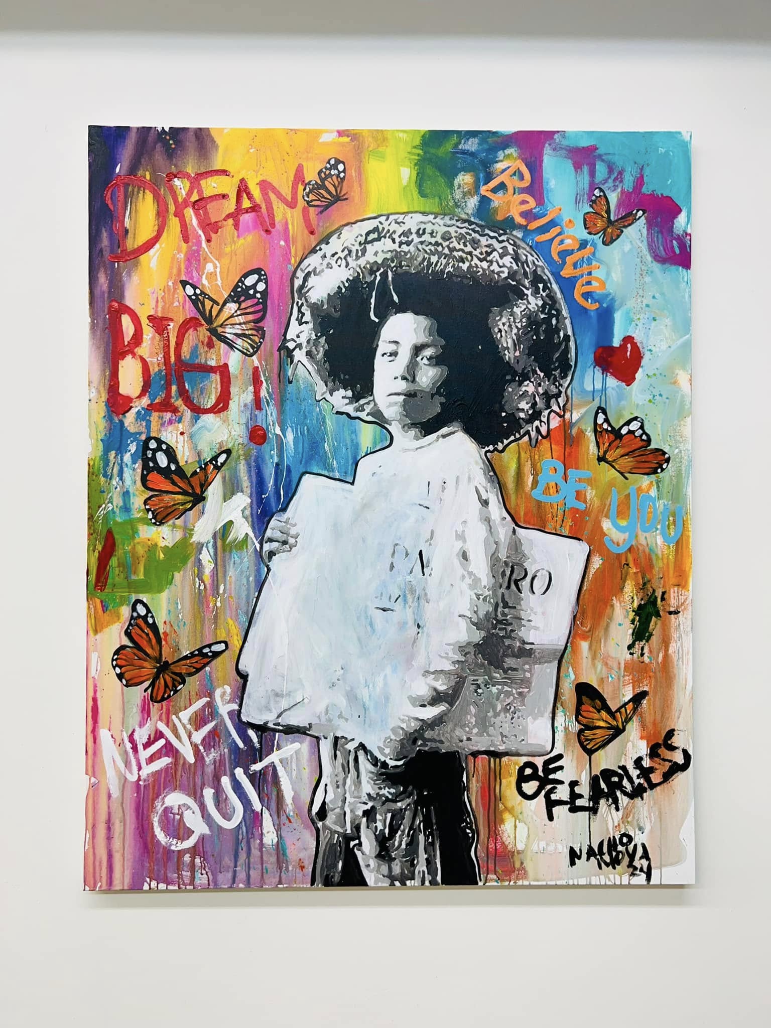 Work directly with Nacho to create a one-of-a-kind painting that tells your story. From powerful portraits to meaningful scenes inspired by your culture, family, or journey, Nacho guides you through concept, colors, and composition to deliver a piece you’ll be proud to display for life.